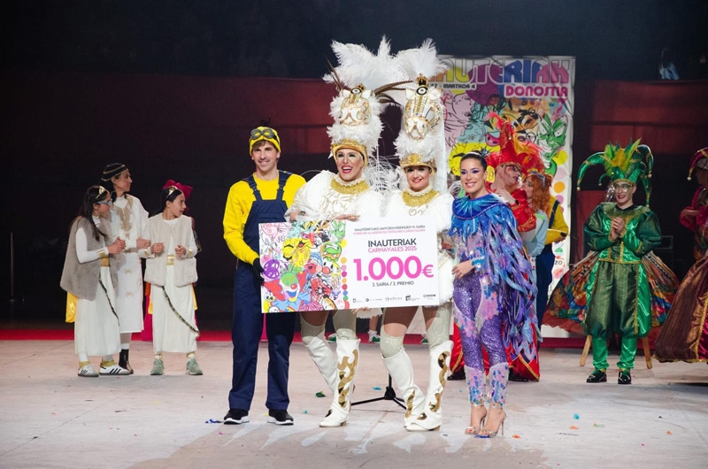 Nuestra alegría llega en Illumbe cuando nos otorgan el 2º premio a mejor diseño de vestuario y en la cena de entrega de premios por 5 años consecutivos y 9 años en nuestra trayectoria con el GRAN PREMIO AL CARNVAL DONOSTIARRA. Un año más volvemos a subirnos a la nube del reconocimiento y la valoración al esfuerzo, creatividad y la imaginación.