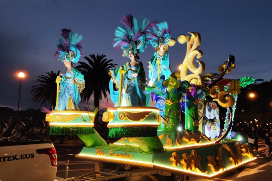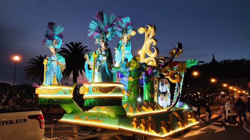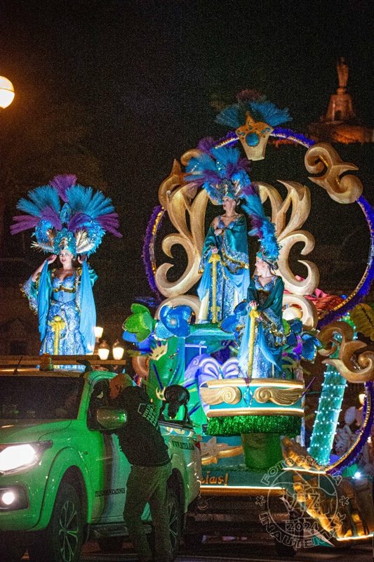 Los grupos mencionados anteriormente iban delante de la espectacular carroza, con los reyes del carnaval minuciosamente escogidos para representar a las Princesas.
