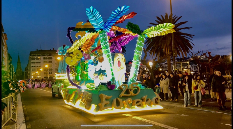 Visitamos varios centros de ancianos animándoles con la Txaranga, rompiendo la rutina y llenando de color sus vidas, comimos en cantidad de restaurantes como auténticos reyes y nos alojaron en el Hotel Londres durante los 5 días, conectamos con nuestras maquilladoras Soler como si fueran de nuestra familia, conocimos a cientos de personas, sentimos el calor del público en cada acto, sentimos el cariño de niños y adultos, nos sentimos arropados por el resto de compañeros carnavaleros, la organización se portó de una manera cercana y excepcional, y así con cada una de las personas que nos acompañaron.