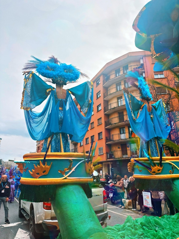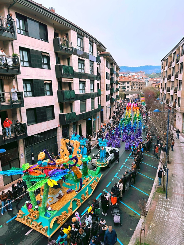 Llega el primer desfile, sábado, una lluvia que no cesaba, pero a pesar de todo se decidió seguir adelante con el desfile. A pesar de la lluvia y de las tres horas de desfile, llenamos las calles de alegría, risas y espectáculo. El desfile del domingo también fue pasado por agua pero la duración del mismo fue más corta.