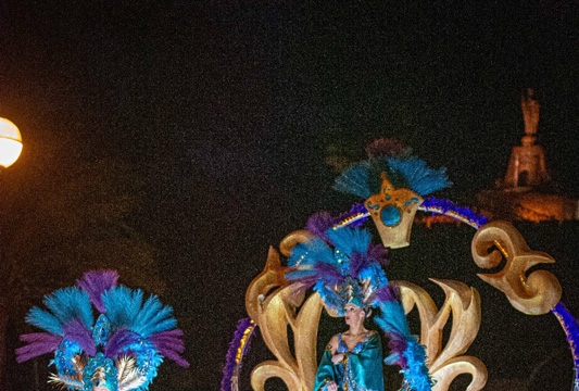 En mi sequito introduje mis tres pilares: Miriam López, Nay Domínguez y Eli Garzo. Ellas me acompañaron durante cinco días increíbles, la elección de nuestra temática fue Aves exóticas del paraíso, en la que hubo trajes con color, fantasía y plumas, todo un espectáculo. La recogida en la Plaza de la Constitución el jueves fue emocionante con unos pasacalles de comaprseros de diferentes comparsas alumbrando un pasillo con antorchas y al fondo ellos… Mis padres, llorando de emoción al ver un sueño cumplido.