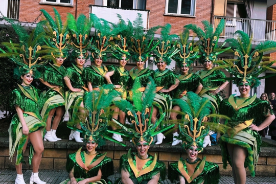 Nuestro carnaval estaba compuesto por 9 diseños. Al mando de nuestra comparsa un coche antiguo con el pregonero mágico repartiendo caramelos de lo más sonriente y atento y a la vez paseando nuestro domador el león sacando sonrisas a los más pequeños, detrás los magos con sus conejitos sacados de esas chisteras maravillosas creando su magia más mágica, una megafonía que separaba a los siguientes grupos, a la cabeza el grupo los presentadores-domadores, llenos de luz propia, pierrots llenos de fuerza y precisión, trapecistas con elegancia en estado puro, marionetas con alegría y disfrute, pitita fashion locura infinita y elegancia suprema haciendo un guiño al arlequín y el carrusel la joya de la corona representando a la ciudad de san Sebastián.